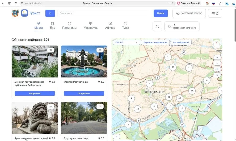 С целью обеспечения доступа к информации о туристических маршрутах, инфраструктуре и достопримечательностях Донского региона на основе мобильного приложения «Турист РО» в январе 2026 года внедрен и успешно функционирует туристический веб-портал «Турист» Ростовской области: https://tourist.donland.ru/.